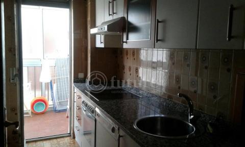 Cocina con todos los electrodomésticos (microondas, lavavajillas, lavadora...) y terraza.